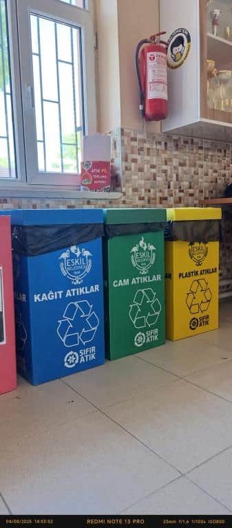 Okulumuz bünyesinde, Çevre ve Şehircilik Bakanlığı tarafından Türkiye genelinde başlatılan " Sıfır Atık Projesi" kapsamında, atık oluşumunun önlenmesinden başlayarak atıkların azaltılması, kaynağında ayrı biriktirilmesi, geçici depolanması, ayrı toplanması, taşınması ve işlenmesi süreçlerinin hepsini içine alan " Sıfır Atık Yönetim Sistemi " kurulmuştur.